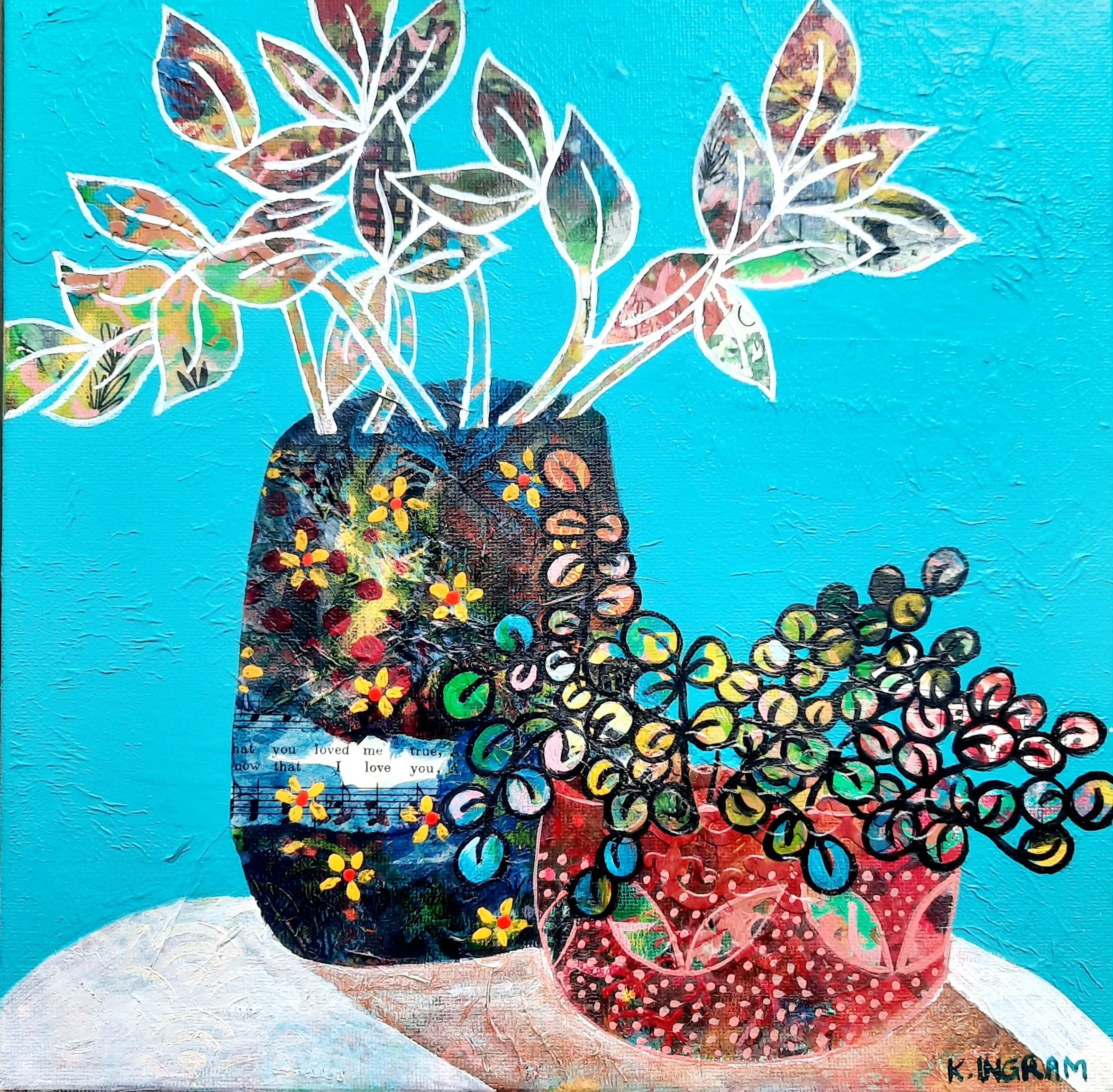 A classic still life with a quirky, textured twist in my unique style.